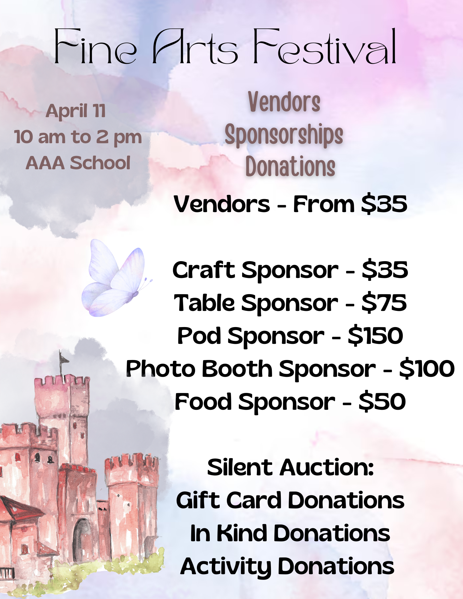 Every child needs to have a wristband to attend the Fine Arts Festival. This wristband will give you entry to the event, ability to do participate in all crafts, games and activities.